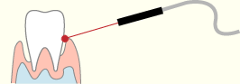 歯周ポケットにレーザーを照射し、歯周病菌を急激に減らす事で治りを早くします。