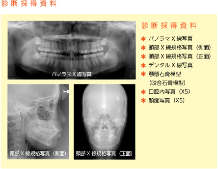 初診後、矯正治療を希望される方は、現在の状態を正確に把握し、判断するために下記の資料を採得します。